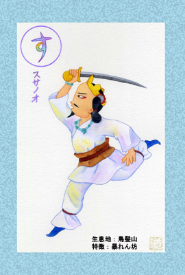 "Susanoh" Habitat:At Mt.Chohatu in Izumo Character:He is rowdy because he is the god of the sea abd storms. |